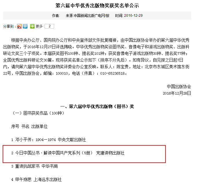 近日,第六屆中華優(yōu)秀出版物獎揭曉,黨建讀物出版社委托我院和人文學院部分教師編寫的《今日中國》“解讀中國共產黨”系列圖書,獲評第六屆中華優(yōu)秀出版物獎。